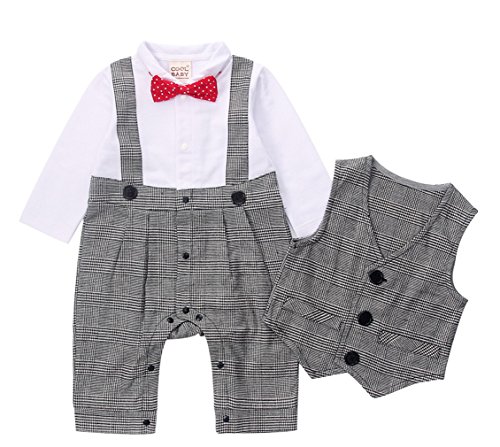 (コ-ランド) Co-land ベビー服 フォーマル ロンパース ベスト 2点セット 長袖 カバーオールスーツ 前開き チェック柄 蝶ネクタイ飾り 紳士服 男の子 70