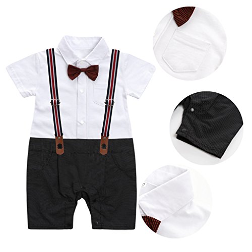 - 蝶ネクタイつき、かっこいい男の子フォーマルロンパースです。