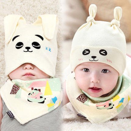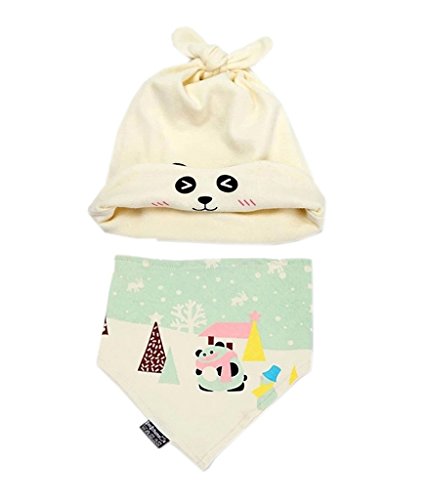 (コ-ランド) Co-land ベビーキャップ よだれかけ 2点セット 新生児スタイ 赤ちゃんビーニーハット バンダナビブ スタイ 可愛いアニマル ミミ付き帽子 ホワイト