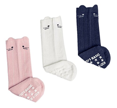 (コ-ランド) Co-land ハイソックス ベビー 3足セット 赤ちゃん用 靴下 キッズソックス 女の子 男の子 猫 滑り止め 男女児 ニーハイソックス 幼稚園 S