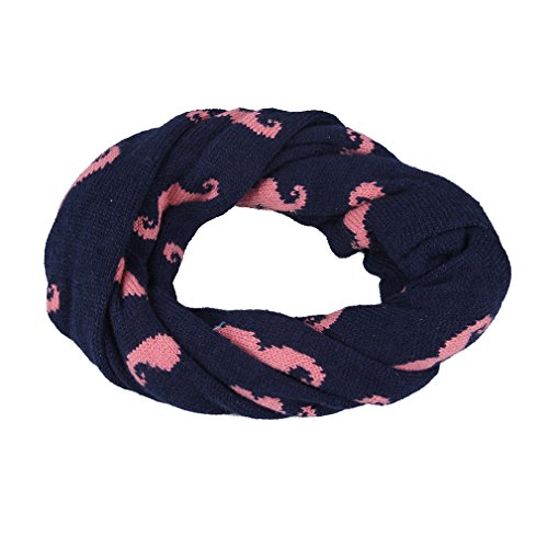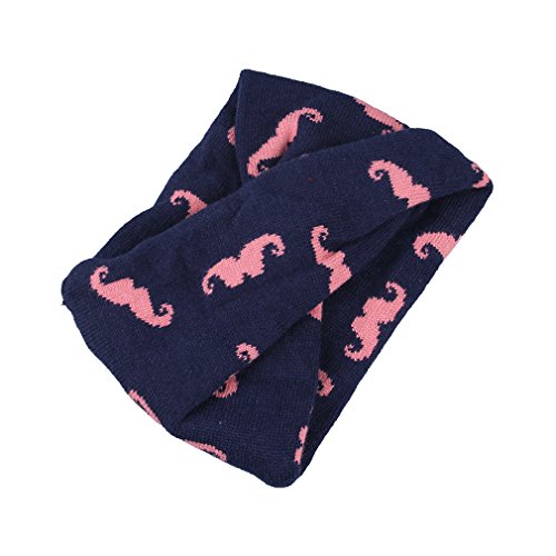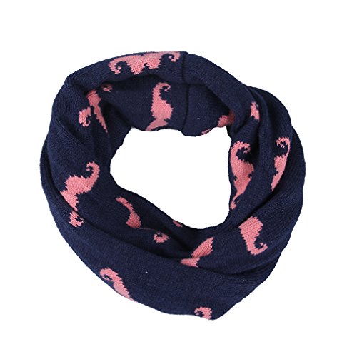 (コ-ランド) Co-land 子供用 赤ちゃん ベビーニットネックウォーマー キッズスヌード 毛糸スカーフ ニットマフラー ちょび髭図案飾り 暖かい お出かけ防寒 女の子 男の子 (4.ネイビー)