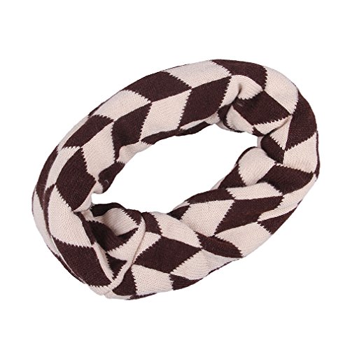(コ-ランド) Co-land 子供用 赤ちゃん ベビーニットネックウォーマー キッズスヌード 毛糸スカーフ ニットマフラー 菱形チェック柄 暖かい お出かけ防寒 女の子 男の子 (6.ブラウン)