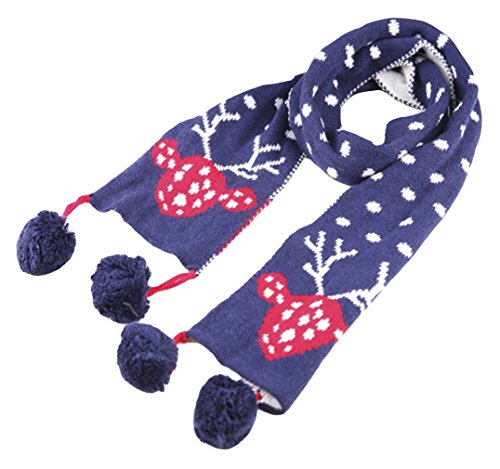 (コ-ランド) Co-land 子供 マフラー キッズ 襟巻 スヌード ポンポン ベビー 秋冬防寒 女の子 ガールズ ストール シカ図案 ドット柄 可愛い ネイビー