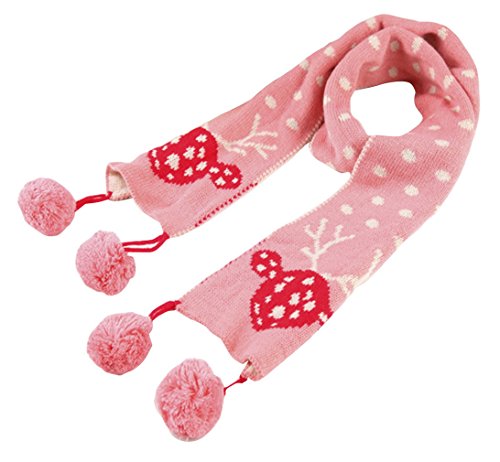(コ-ランド) Co-land 子供 マフラー キッズ 襟巻 スヌード ポンポン ベビー 秋冬防寒 女の子 ガールズ ストール シカ図案 ドット柄 可愛い ピンク