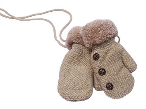 (コ-ランド) Co-land 子供用 手袋 キッズ ミトン ニットグローブ ベビー 暖かい てぶくろ 女の子 男の子 ボタン飾り 秋冬 防寒 通学通園 アウトドア オフホワイト