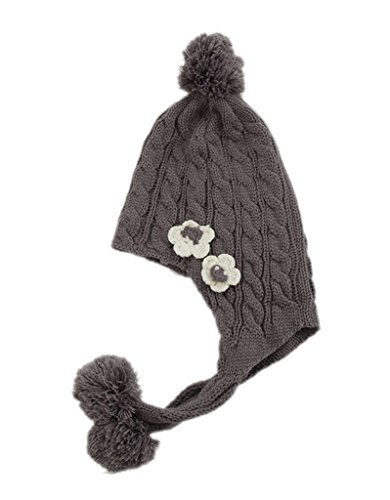 (コ-ランド) Co-land ベビー帽子 新生児ハット ニット帽子 子供用キャップ 耳あて 花付き 柔らかい 防寒対策 赤ちゃん キッズ帽子 幼児 お出かけ グレー