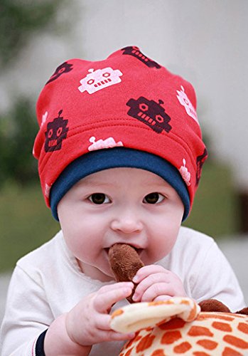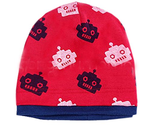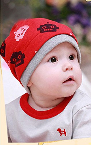 (コ-ランド) Co-land ベビー帽子 新生児ハット コットン帽子 子供用キャップ 耳あて ロボットプリント 男の子 女の子 防寒対策 赤ちゃん キッズ帽子 幼児 お出かけ レッド