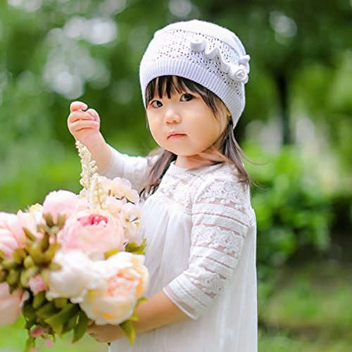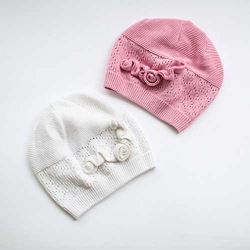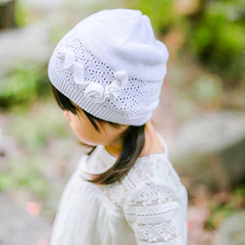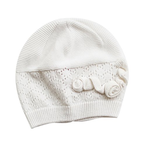 (コ-ランド) Co-land ベビー帽子 新生児ハット ニット帽子 子供用キャップ コットン 透かし彫り 防寒 赤ちゃん キッズ帽子 幼児 女の子 お出かけ ホワイト S
