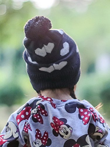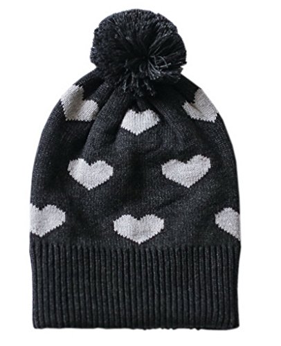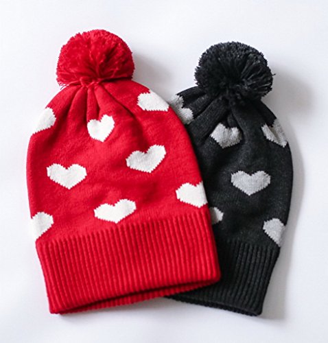 (コ-ランド) Co-land ベビー帽子 新生児ハット ニット帽子 子供用キャップ ハート図案 耳あて 防寒 赤ちゃん キッズ帽子 幼児 女の子 お出かけ ブラック S