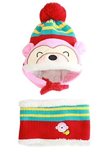 (コ-ランド) Co-land ベビー帽子 マフラー 新生児ハット ニットスヌード 子供用キャップ クマ 笑顔 ネックウォーマー 2点セット キッズ帽子 男女児 お出かけ レッド