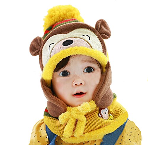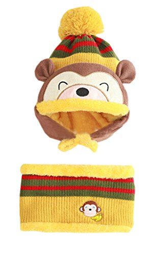 (コ-ランド) Co-land ベビー帽子 マフラー 新生児ハット ニットスヌード 子供用キャップ クマ 笑顔 ネックウォーマー 2点セット キッズ帽子 男女児 お出かけ イエロー