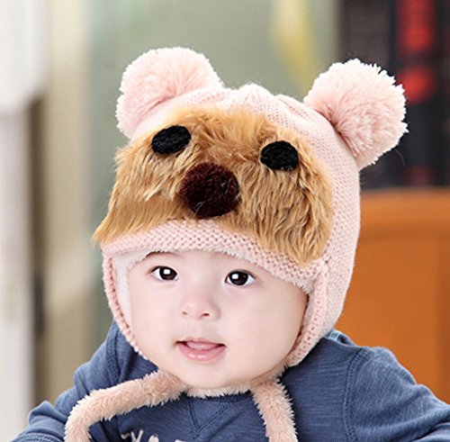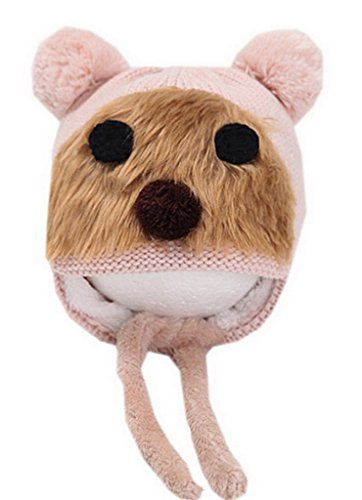 (コ-ランド) Co-land ベビー帽子 赤ちゃんハット ニット帽子 子供用キャップ くまちゃん 裏ボア 裏起毛 防寒 キッズ 幼児 女の子 男の子 お出かけ ピンク