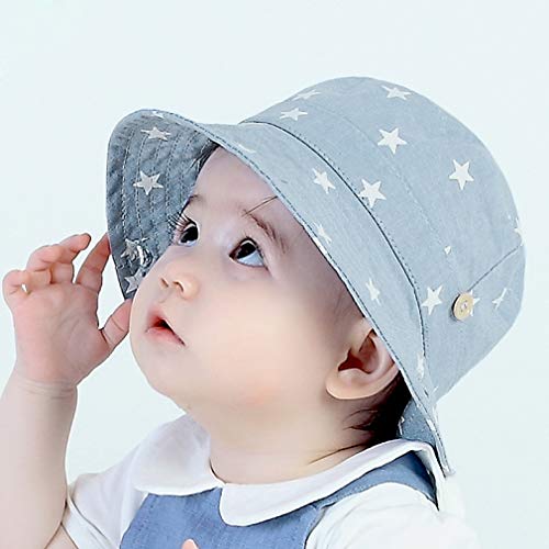 (コ-ランド) Co-land ベビー用ハット つば広 赤ちゃんキャップ キッズ 帽子 子供サンバイザー フィッシャーマンハット 星柄 ジーンズ風 女の子 男の子 男女児 紫外線 UVカット ライト色 50cm