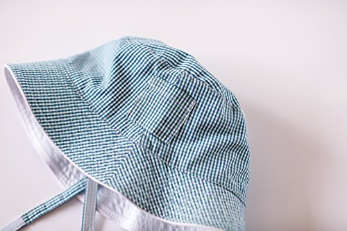 - とても可愛いらしい格子縞のつば付き帽子です。帽子の首紐がついているので脱げません。