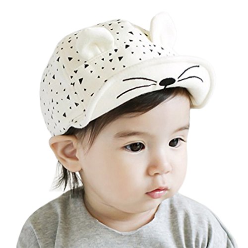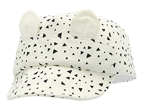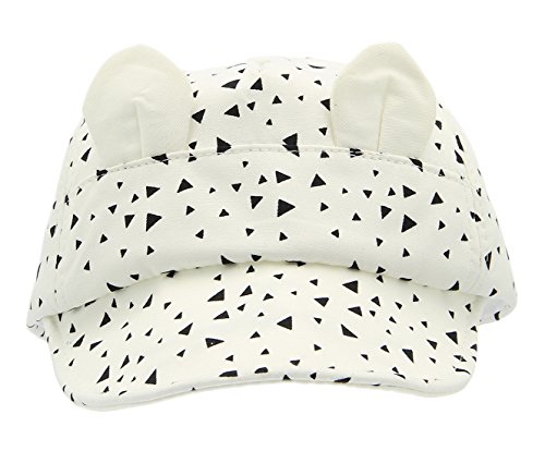 (コ-ランド) Co-land 帽子 ベビーキャップ キッズハンチング帽子 子供ハット 三角形プリント 耳付き ネコ模様 男女児 新生児 女の子 男の子 お出かけ 紫外線対策 ホワイト
