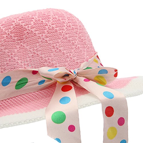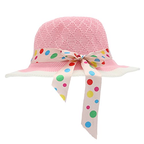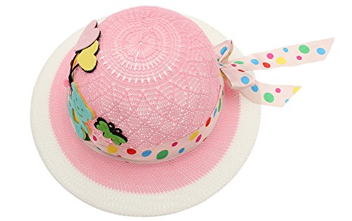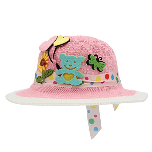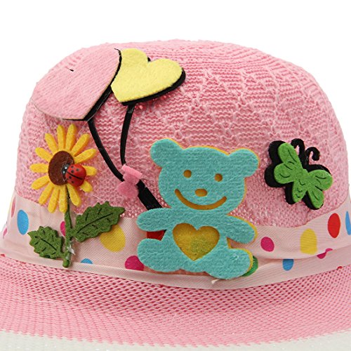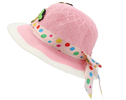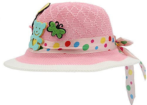 (コ-ランド) Co-land キッズ 子供用帽子 ベビー キャップ 女の子ハット つば広 リボン 可愛い柄飾り 女児 紫外線UVカット 通学通園 お出かけ ピンク