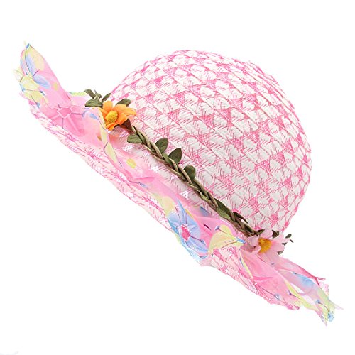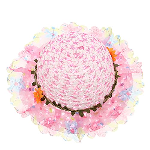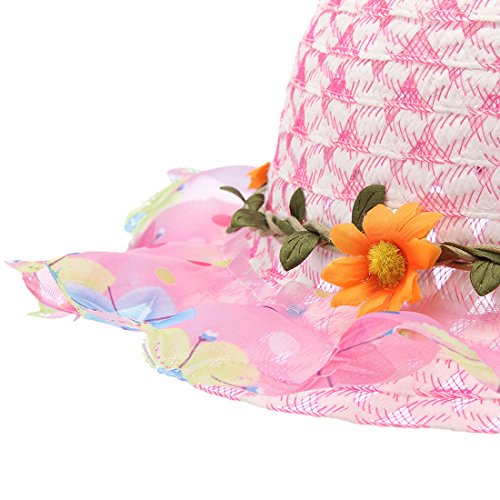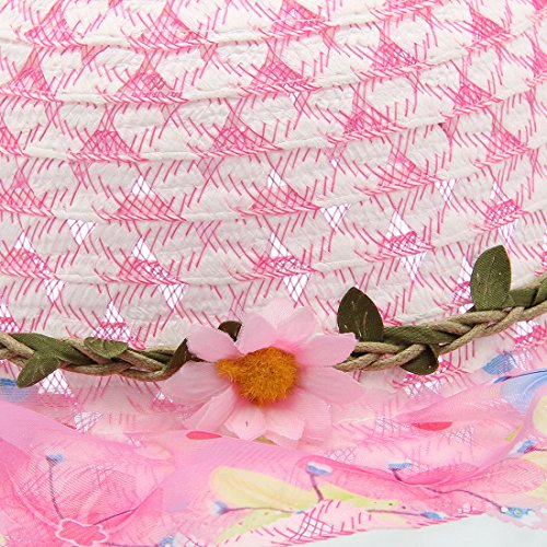(コ-ランド) Co-land キッズ 子供用帽子 ベビー キャップ 女の子ハット つば広 レース 花飾り 女児 紫外線UVカット 通学通園 お出かけ ピンク