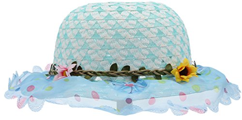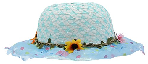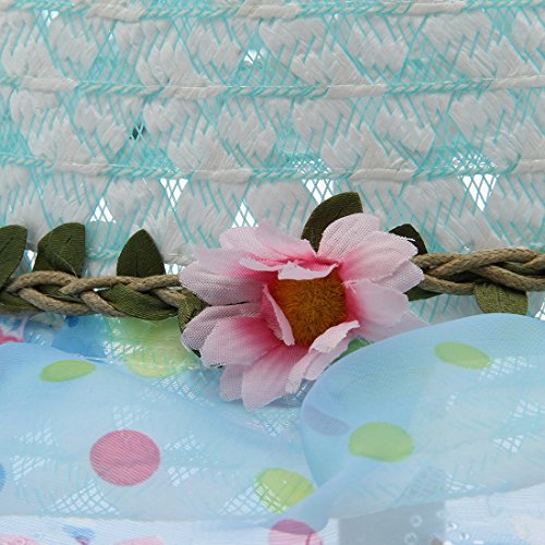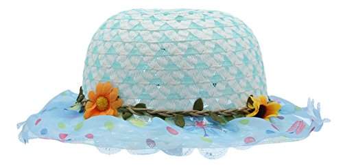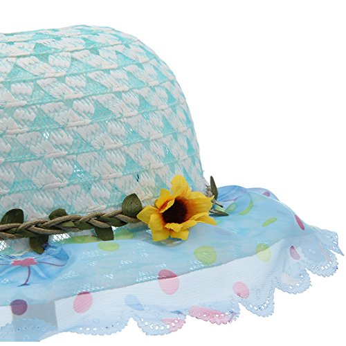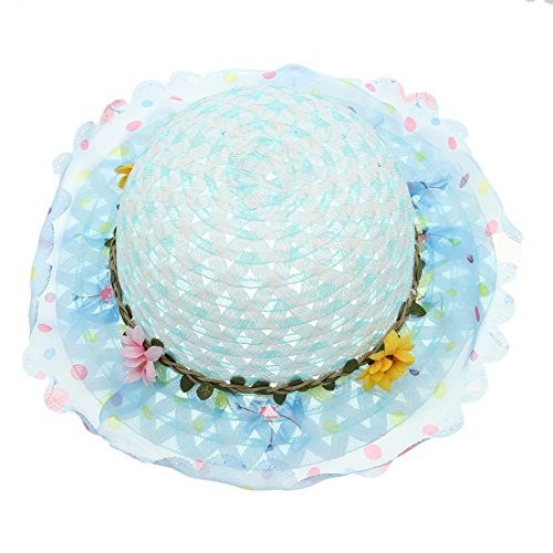 (コ-ランド) Co-land キッズ 子供用帽子 ベビー キャップ 女の子ハット つば広 レース 花飾り 女児 紫外線UVカット 通学通園 お出かけ ブルー