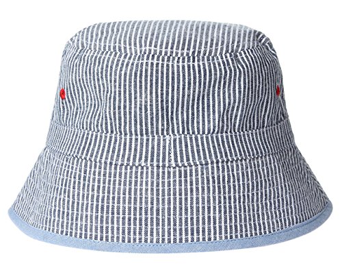(コ-ランド) Co-land ベビー用ハット 赤ちゃんキャップ キッズ帽子 子供サンバイザー フィッシャーマンハット 縞柄 リバーシブル 女の子 女児 紫外線 UVカット ライトブルー 52cm