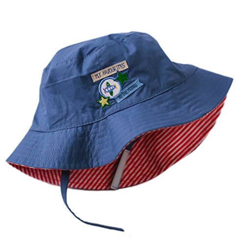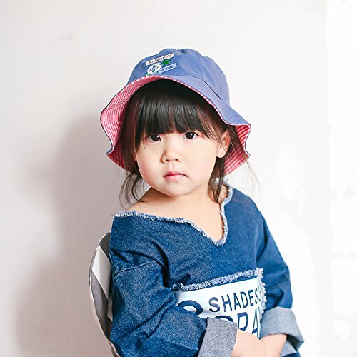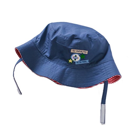(コ-ランド) Co-land ベビー用ハット 赤ちゃんキャップ キッズ帽子 子供サンバイザー フィッシャーマンハット 刺繍柄 女の子 男の子紫外線 UVカット ネイビー 52cm