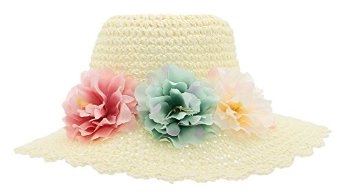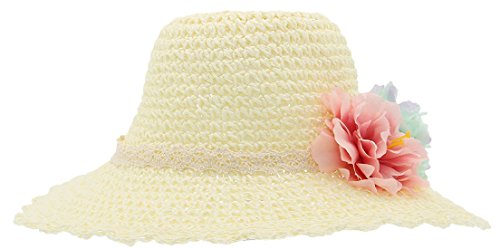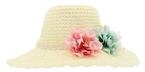 (コ-ランド) Co-land キッズ麦わら帽子 子供用ストローハット ベビー キャップ 女の子 フラワー飾り 女児 紫外線UVカット 春夏 通学通園 お出かけ ホワイト