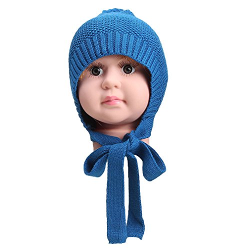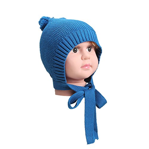 (コ-ランド) Co-land ニット帽子 キッズ 秋冬 可愛い ボンボン ベビーハット 子供用 とんがり 帽子 女の子 男の子 赤ちゃん ニットキャップ ブルー