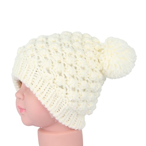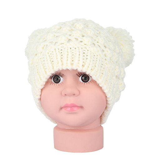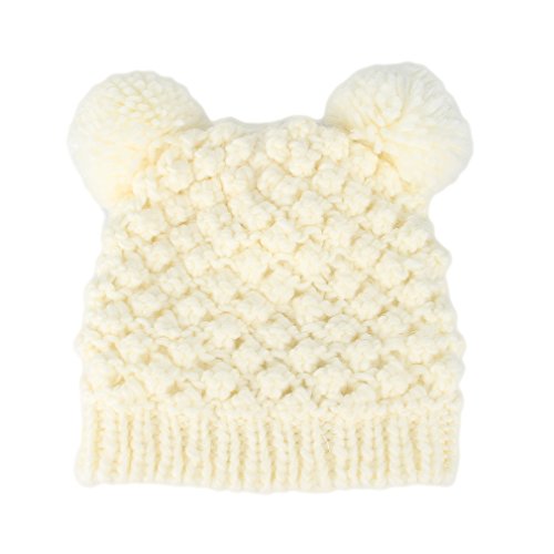(コ-ランド) Co-land ベビー帽子 新生児ハット ニット帽子 子供用キャップ パイナップル模様 赤ちゃん ポンポン キッズ帽子 女の子 男の子 お出かけ 防寒 ホワイト