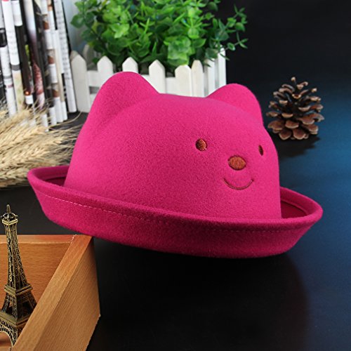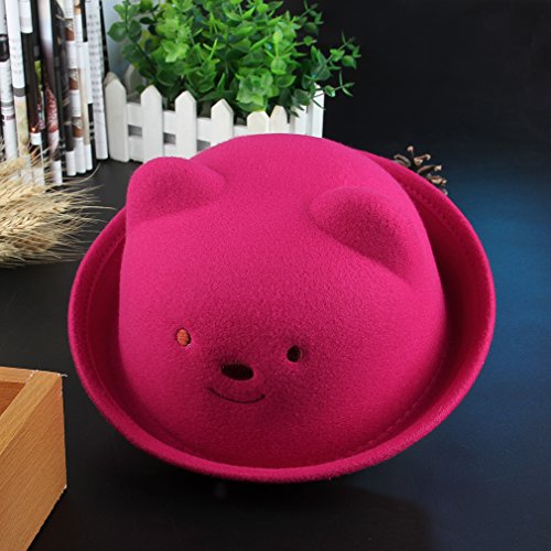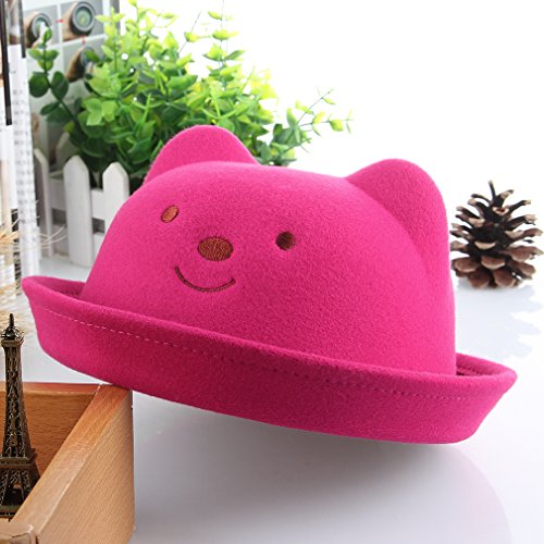 (コ-ランド) Co-land 可愛い 子供用帽子 ハット キッズ フェルトハット 耳付き くまちゃん ボーラーハット ベビーキャップ 女の子 男の子 秋冬防寒 ローズ