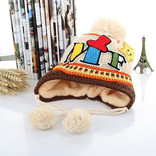 (コ-ランド) Co-land ベビー帽子 ニット帽 キッズハット 子供用キャップ ポンポン 耳あて 英字柄 女の子 男の子 男女児 赤ちゃん お出かけ 秋冬防寒 可愛い オフホワイト