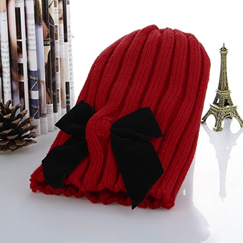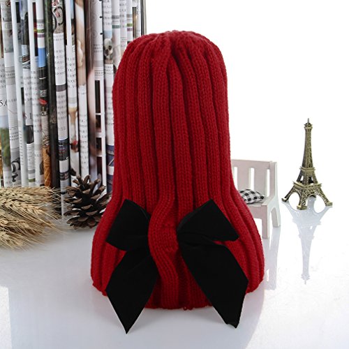 (コ-ランド) Co-land ベビー帽子 とんがりニット帽 キッズハット 子供用キャップ 蝶結び飾り 女の子 女児 赤ちゃん あったか お出かけ 秋冬防寒 可愛い レッド