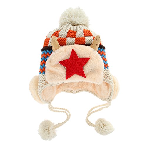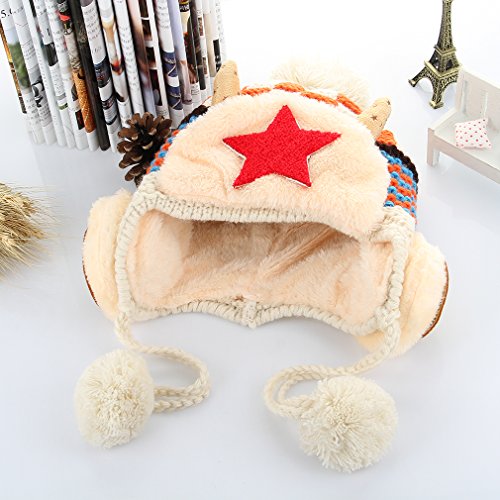 (コ-ランド) Co-land ベビー帽子 ニット帽 キッズハット 子供用キャップ ポンポン 耳あて 星柄 女の子 男の子 男女児 赤ちゃん あったか 秋冬防寒 可愛い オフホワイト