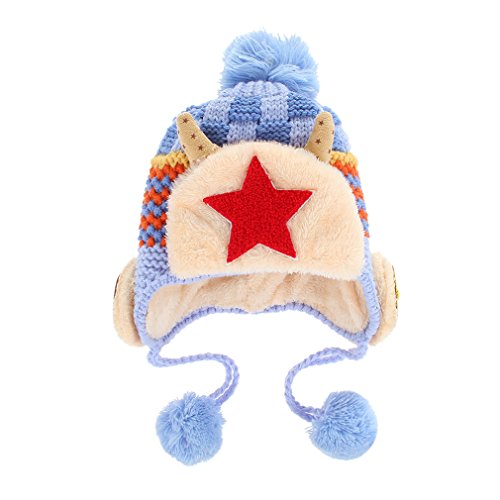 (コ-ランド) Co-land ベビー帽子 ニット帽 キッズハット 子供用キャップ ポンポン 耳あて 星柄 女の子 男の子 男女児 赤ちゃん あったか 秋冬防寒 可愛い ブルー