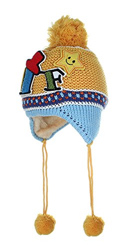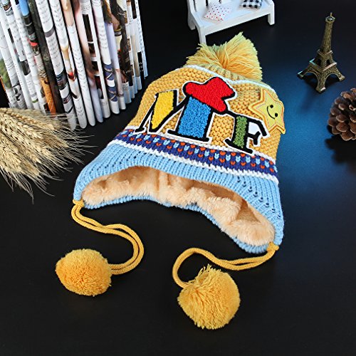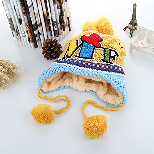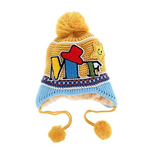 (コ-ランド) Co-land ベビー帽子 ニット帽 キッズハット 子供用キャップ ポンポン 耳あて 英字柄 女の子 男の子 男女児 赤ちゃん お出かけ 秋冬防寒 可愛い イエロー
