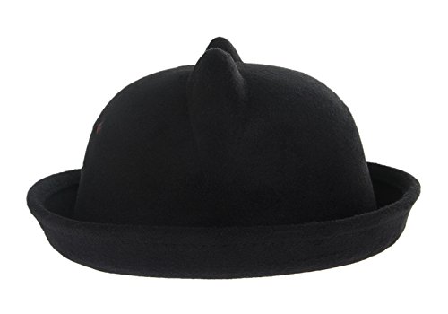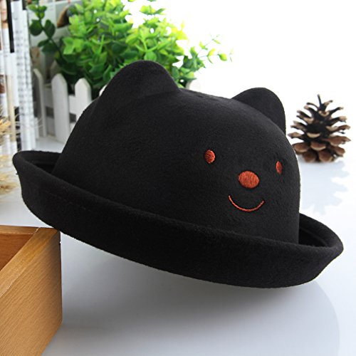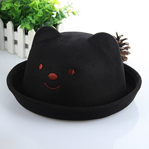 (コ-ランド) Co-land 可愛い 子供用帽子 ハット キッズ フェルトハット 耳付き くまちゃん ボーラーハット ベビーキャップ 女の子 男の子 秋冬防寒 ブラック