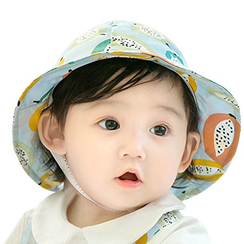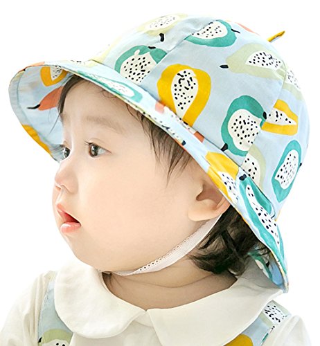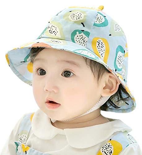 (コ-ランド) Co-land ベビー用ハット 赤ちゃんキャップ キッズ帽子 子供サンバイザー フィッシャーマンハット 果物柄 女の子 男の子 紫外線 UVカット ブルー