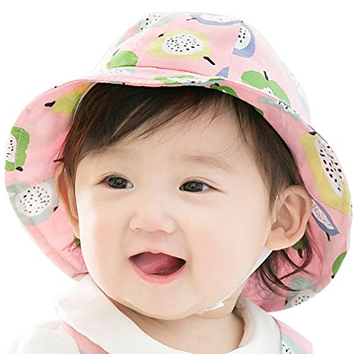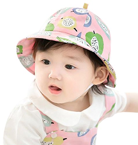(コ-ランド) Co-land ベビー用ハット 赤ちゃんキャップ キッズ帽子 子供サンバイザー フィッシャーマンハット 果物柄 女の子 男の子 紫外線 UVカット ピンク
