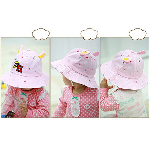 (コ-ランド) Co-land ベビー用ハット 赤ちゃんキャップ キッズ帽子 子供サンバイザー フィッシャーマンハット 耳付き 小柄 女の子 男の子 紫外線 UVカット ピンク