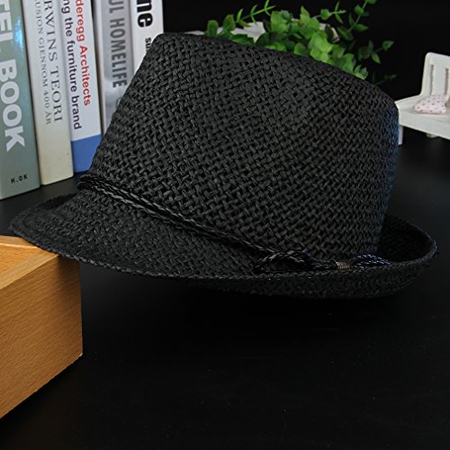 (コ-ランド) Co-land 麦わら帽子 キッズ 中折れハット 子供用 無地 ベビー キャップ 女の子 男の子 紫外線UVカット 春夏 通学通園 お出かけ ブラック