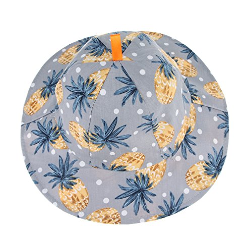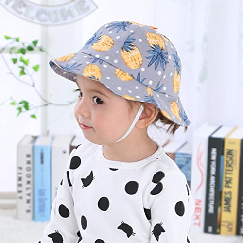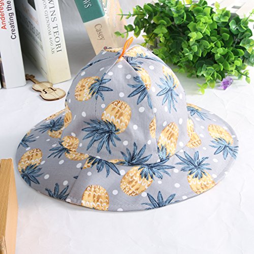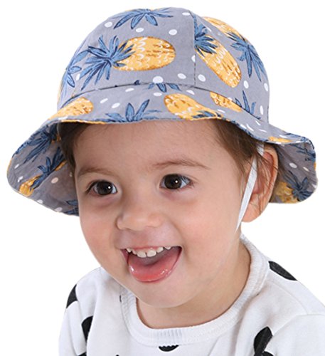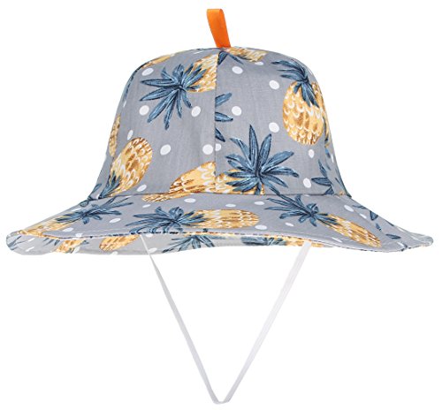 (コ-ランド) Co-land ベビー ハット つば広 赤ちゃん キッズ帽子 子供サンバイザー バケットハット パイナップル柄 あご紐 男の子 女の子 UVカット キャップ グレー