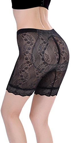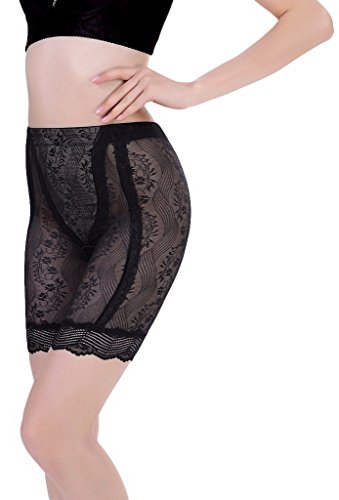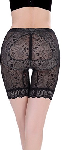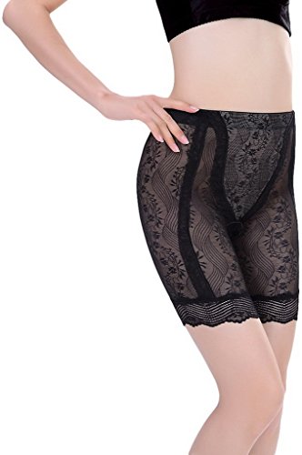(コ-ランド) Co-land 骨盤スッキリショーツ シームレス レディース下着 補正ショーツ お腹引締め シェイプアップ 透明レース柄 ノーマルウエスト 女性用ガードル ブラック XXL