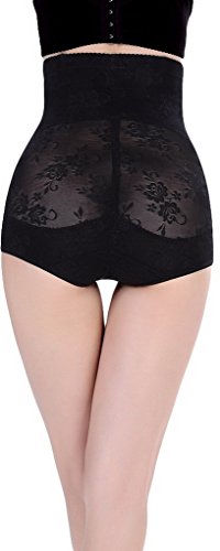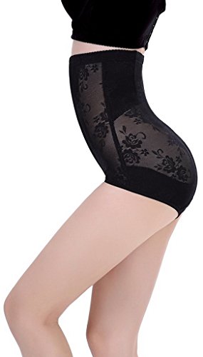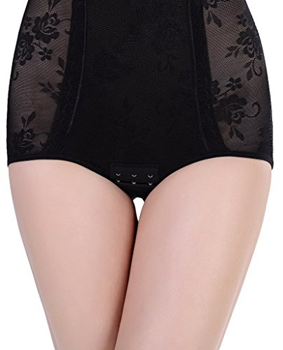 (コ-ランド) Co-land ウエスト下腹補正ショーツ シームレス レディース下着 お腹引締め シェイプアップ ヒップアップ ハイウエスト 透明感 レース花柄 女性用ガードル 産後サポーター ブラック XXXL