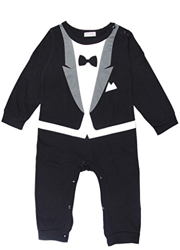 (コ-ランド) Co-land ベビー服 スーツ風 ロンパース 赤ちゃん カバーオール 新生児 長袖 春秋着 子供服 キッズ フォーマル 男の子 出産祝い 結婚式 写真撮影 ブラック 70