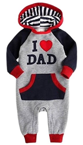 (コ-ランド) Co-land ベビー服 ロンパース 赤ちゃん カバーオール 新生児 長袖 2色配色 フード付き グレー アイラブパパママ 春秋着 子供服 キッズ 男の子 女の子 出産祝い I LOVE DADネイビー 80