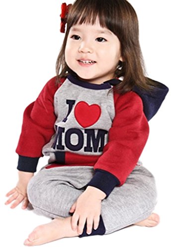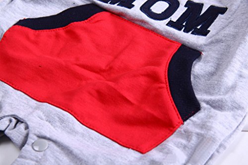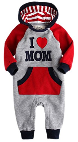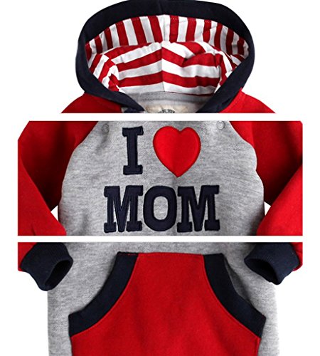 (コ-ランド) Co-land ベビー服 ロンパース 赤ちゃん カバーオール 新生児 長袖 2色配色 フード付き グレー アイラブパパママ 春秋着 子供服 キッズ 男の子 女の子 出産祝い I LOVE MOMレッド 80