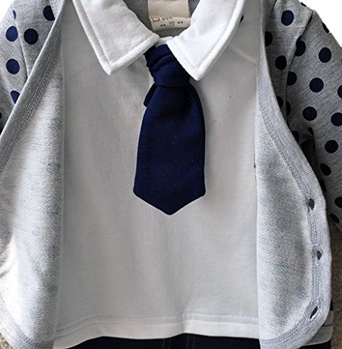 (コ-ランド) Co-land ベビー服 スーツ風 ロンパース 赤ちゃん カバーオール 新生児 長袖 春秋着 子供服 蝶ネクタイ キッズ フォーマル 男の子 出産祝い 写真撮影 グレー 90