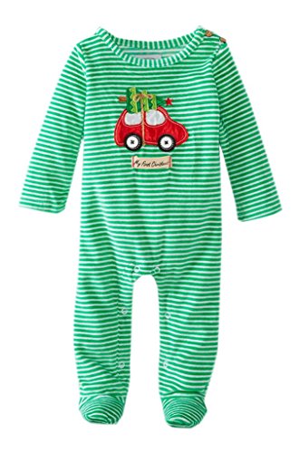 (コ-ランド) Co-land ベビー服 ロンパース 赤ちゃん カバーオール クリスマスを演出 新生児 長袖 秋冬着 子供服 ボーダー 男の子 女の子 出産祝い グリーン 100