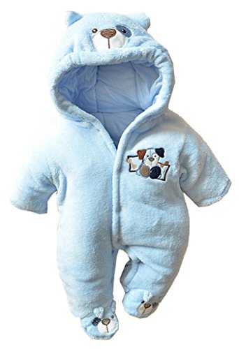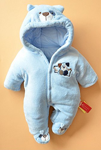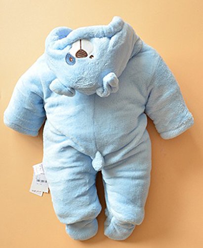 (コ-ランド) Co-land ベビー服 ふわふわ ロンパース 赤ちゃん カバーオール 耳付き 新生児 長袖 フード アニマル 着ぐるみ 綿入り 秋冬防寒 出産祝い ブルー 62