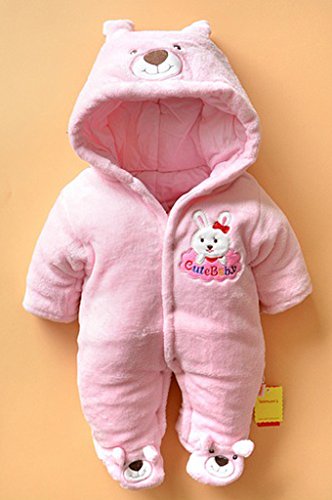 (コ-ランド) Co-land ベビー服 ふわふわ ロンパース 赤ちゃん カバーオール 耳付き 新生児 長袖 フード アニマル 着ぐるみ 綿入り 秋冬防寒 出産祝い ピンクウサギ 56