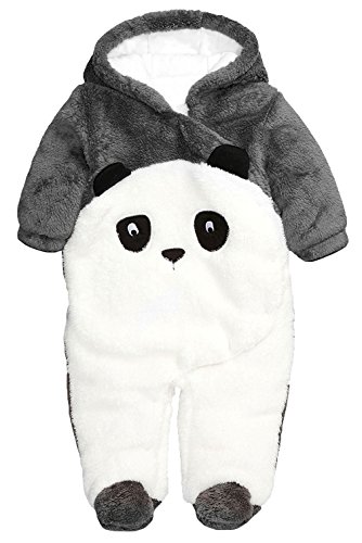 (コ-ランド) Co-land ベビー服 ふわふわ ロンパース 赤ちゃん カバーオール 新生児 長袖 フード付き アニマル 着ぐるみ 綿入り 秋冬防寒 出産祝い パンダ 80