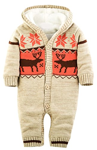 - 赤ちゃんの防寒、保温に、フードつき、かわいいニットセータータイプの暖かいカバーオールです。